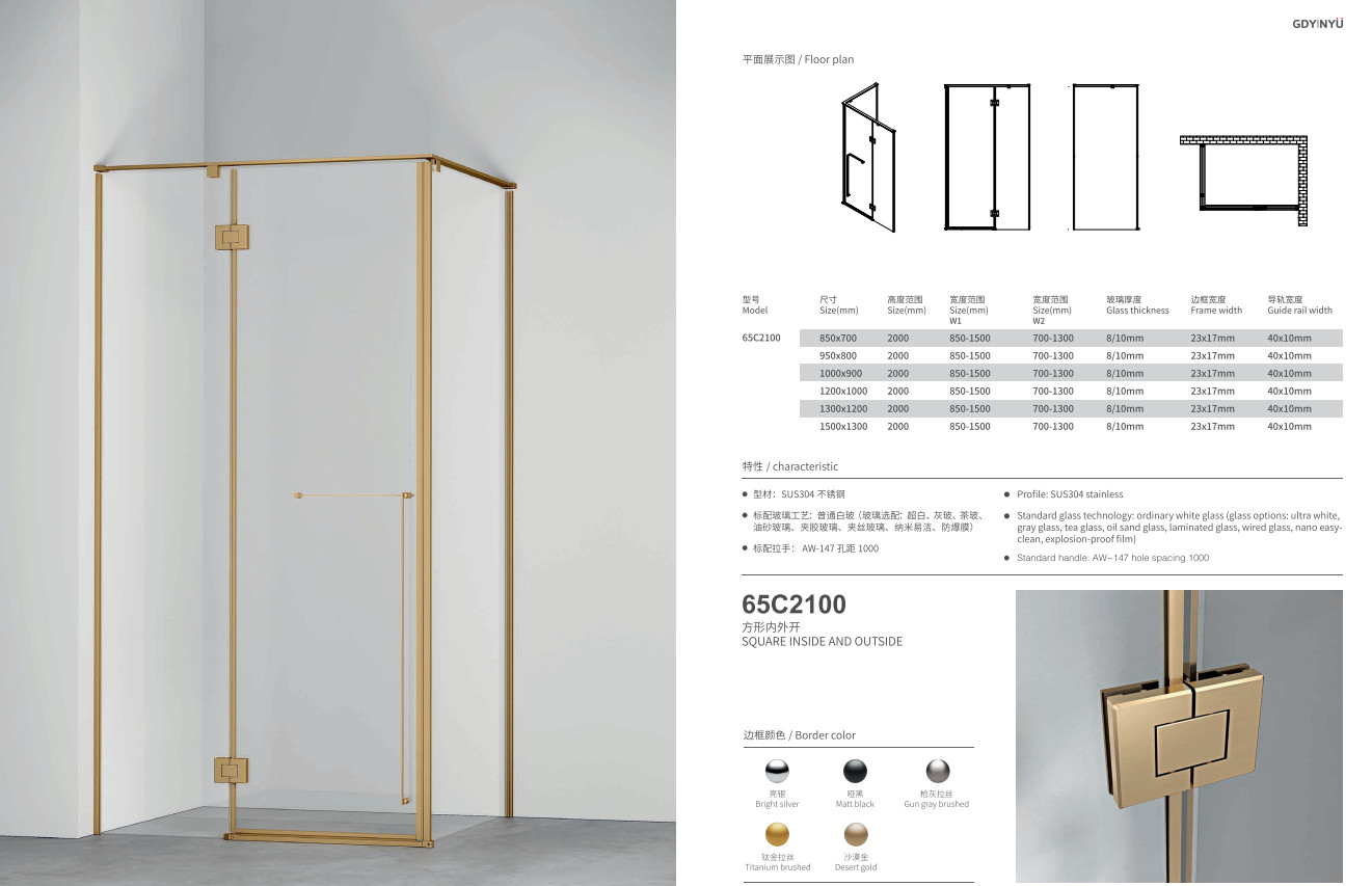 Подводя итог, квадратный душевой корпус 65C2100 спроектирован так, чтобы обеспечивать сочетание стильной эстетики и функциональной производительности.Он превращает обычную ванную в спокойный и утонченный личный спа..